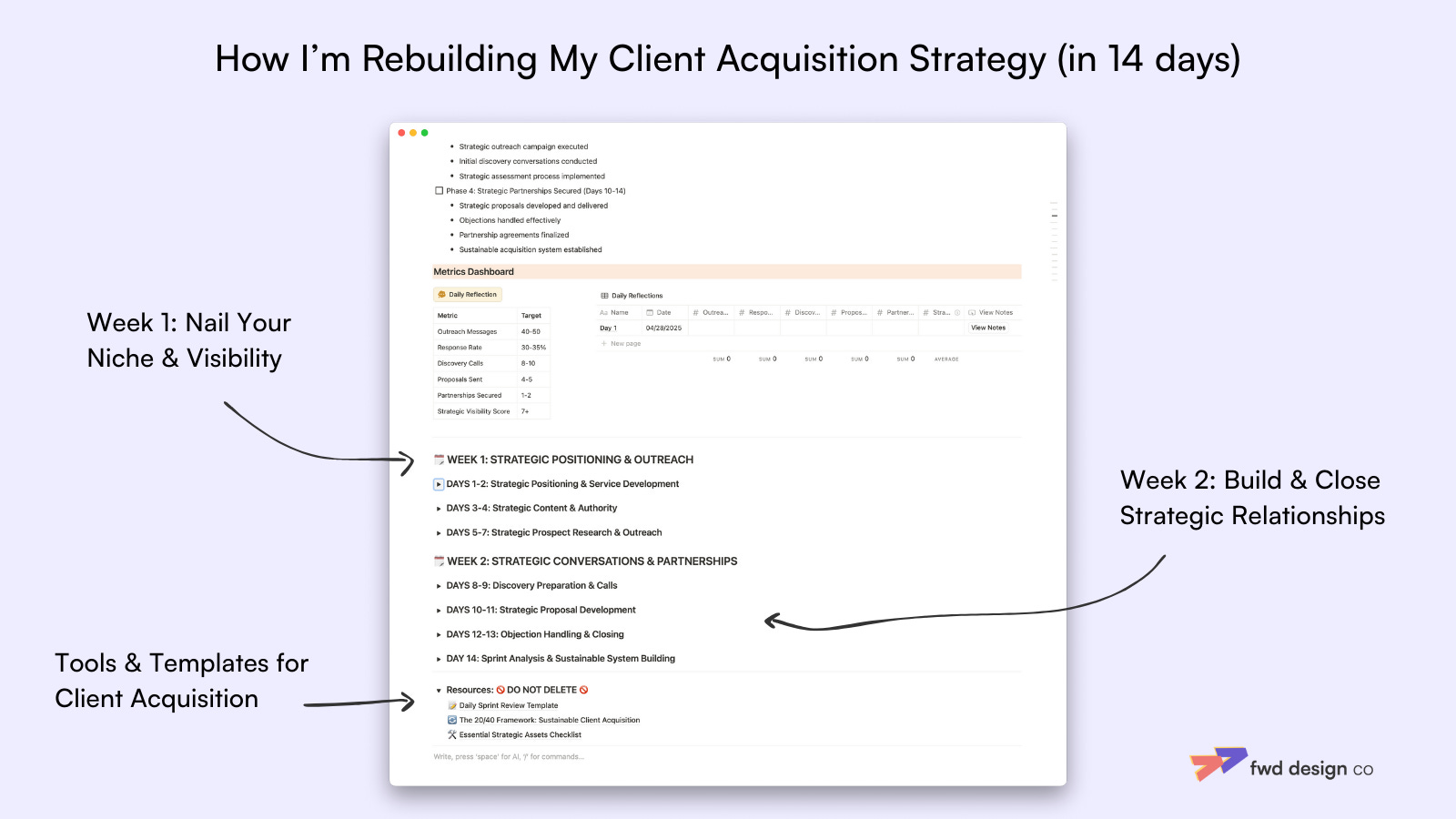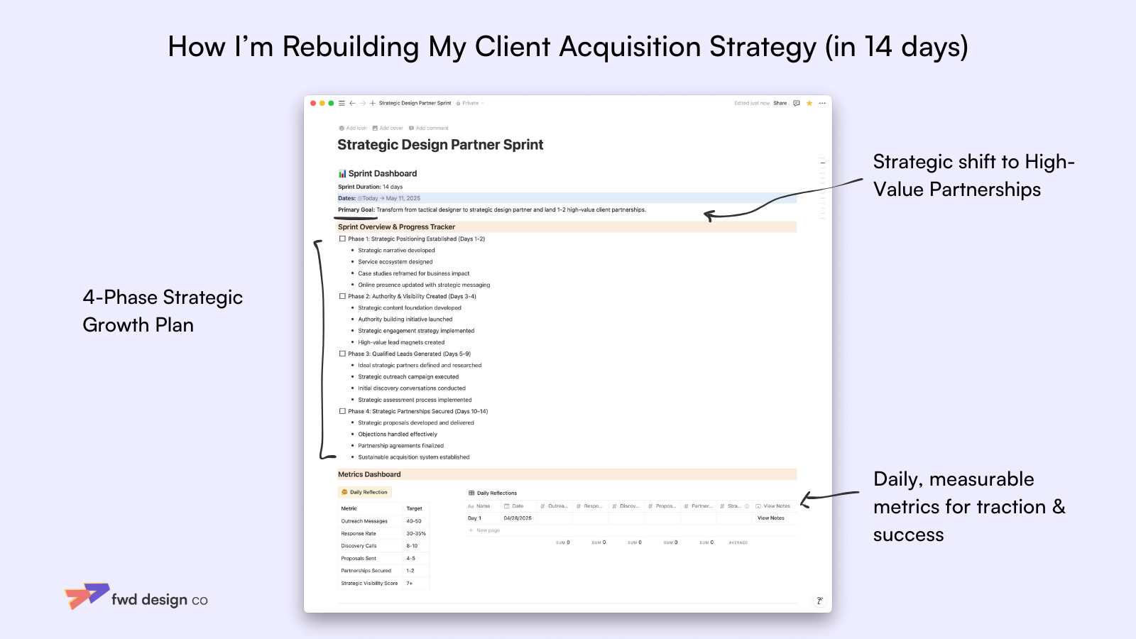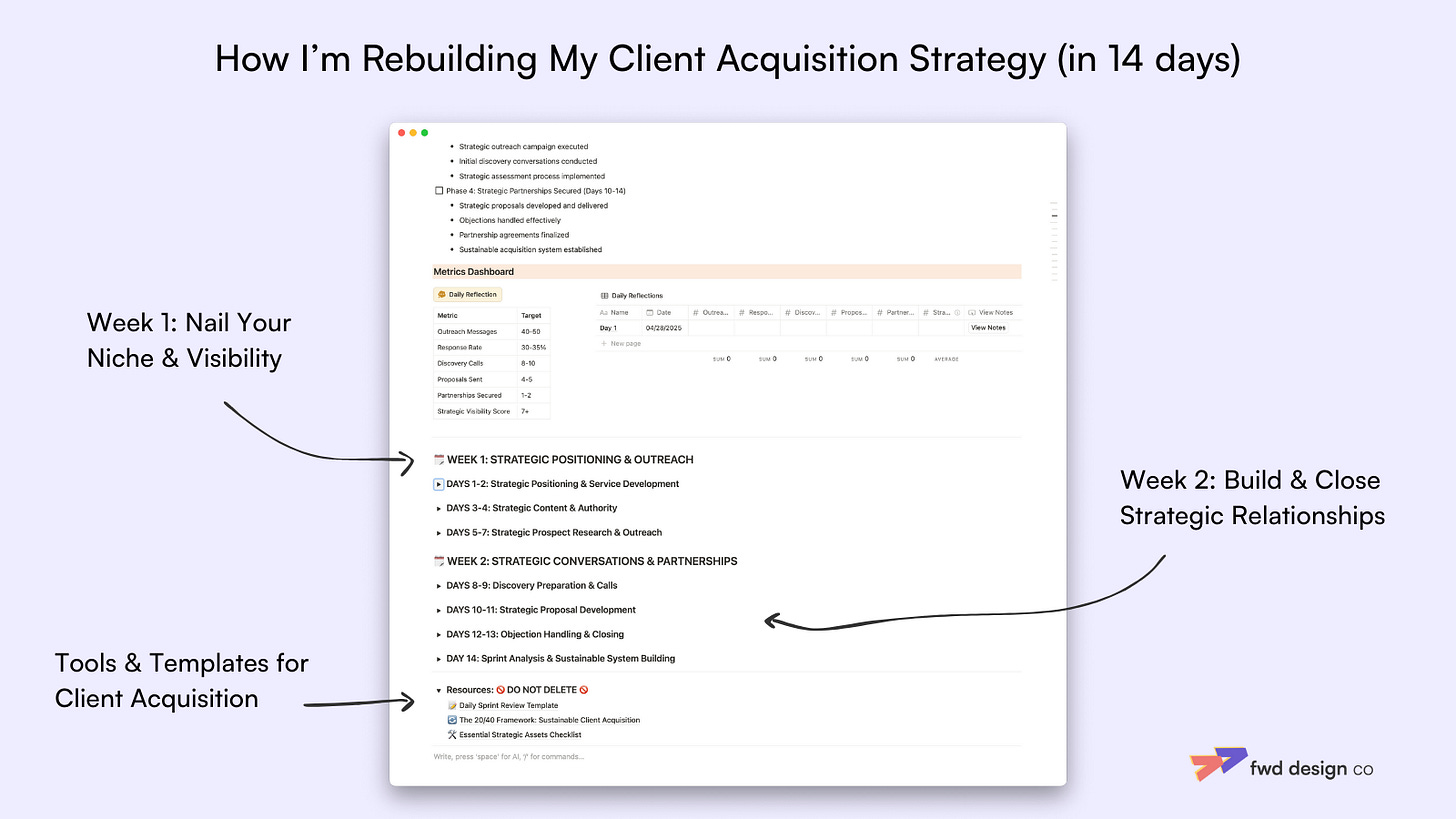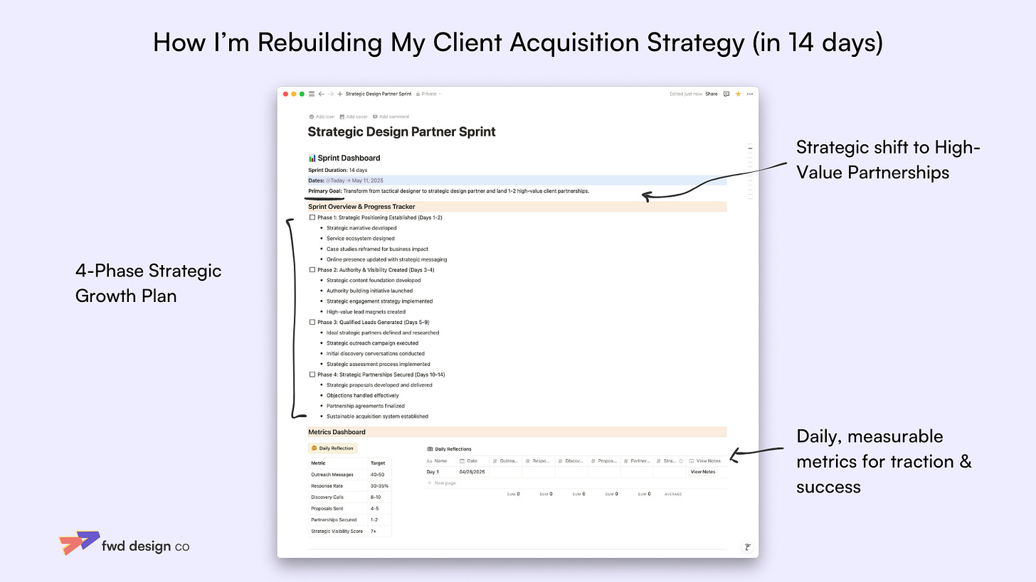 Instead of giving up, I'm launching a condensed 2-week sprint to rethink my client acquisition strategy and generate results quickly.